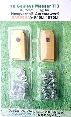 Beste !Titan! 18 Genisys Messer fr alle Husqvarna Automower, Gardena R40Li / R70Li (Ti1=0,45mm) goedkoop. und !Titan! 18 Genisys Messer fr alle Husqvarna Automower, Gardena R40Li / R70Li (Ti1=0,45mm) Preise in DEUTSCH.