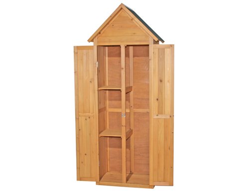 Der Garten- und /oder Werkzeugschrank bietet eine gute und gelungene Aufteilung. Er hat 2 Tren, 2 Ablagebden und ist aus imprgniertem Kiefernholz. Sein Spitzdach verleiht ihm eine wunderschne Optik. Mae: ca. 70 x 183 x 49 cm (B x H x T)