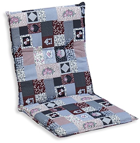Gartenstuhlauflage von beo fr Niederlehner Gartensthle mit karierten, linierten und Motiv-Mustern im Patchwork-Stil.