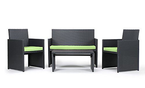 Beste Rattan4Life 4-teilig Neapel Deluxe Polyrattan Gartenmbel Set, Sofa / Lounge / Gartengarnitur / Kissenbezug, schwarz / grn Cheap. und Rattan4Life 4-teilig Neapel Deluxe Polyrattan Gartenmbel Set, Sofa / Lounge / Gartengarnitur / Kissenbezug, schwarz / grn Preise in DEUTSCH.